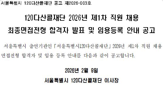 ※ 최종합격자는 2026. 2. 12.(목) 8:50까지 재단 1층 로비에 도착하여 주시기 바랍니다.