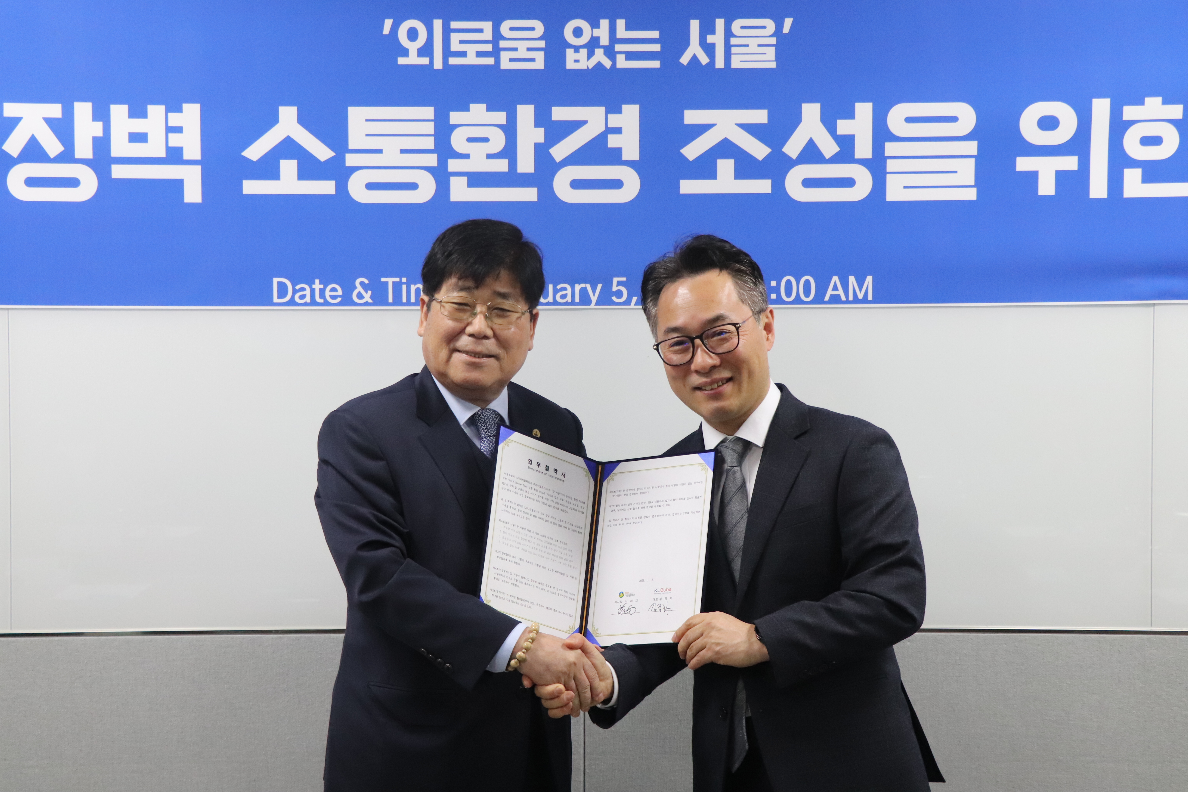지난 1월5일, 120다산콜재단과 KLcube가 행정약자 무장벽 소통환경 조성을 위한 업무협약을 체결했습니다.